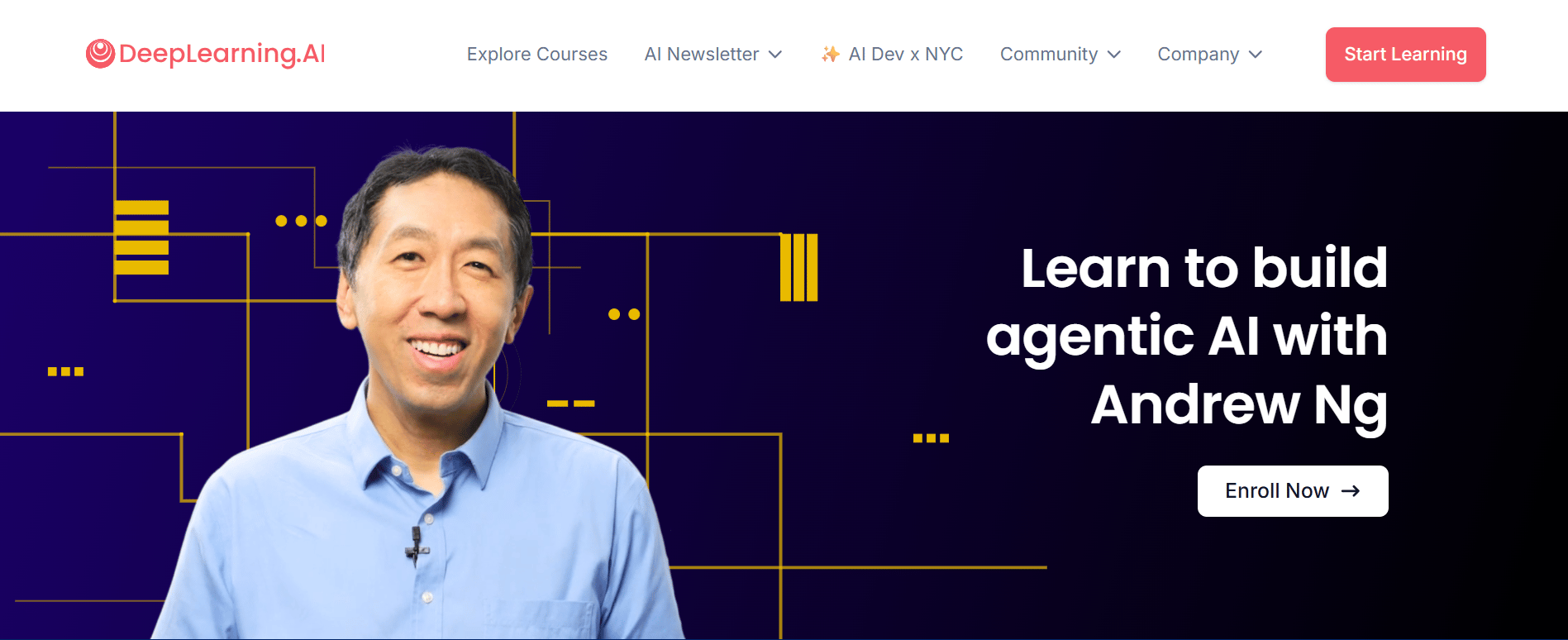 The platform provides online courses for learners of all backgrounds, including the Deep Learning Specialization for foundational AI skills and "AI for Everyone," a non-technical course on understanding and applying AI in organizations.